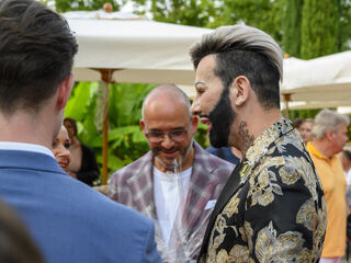 Der 54-jährige Designer im Gespräch mit seinen Gästen.