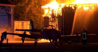 Während des Brandes in der Nacht zum 19. Juni bringen die Einsatzkräfte der Feuerwehr ein Flugzeug des Sportflieger-Clubs in Sicherheit.