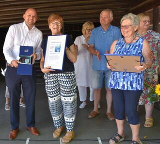 Seit über 30 Jahren leitet Heidi Joos den Asylkreis Oftersheim, der gemeinsam mit dem kommunalen Integrationsteam im Rathaus einen immensen Beitrag dazu leistet, Menschen aus dem Ausland ein neues Leben in der Gemeinde einfacher zu machen. Folgerichtig beschlossen Verwaltung und Gemeinderat gemeinsam, Joos für ihr jahrzehntelanges Engagement mit der Bürgerplakette in Gold auszuzeichnen. „Eine Gemeinschaft lebt davon, dass es Menschen gibt, die mehr tun als sie müssen“, sagte Pascal Seidel bei der Überreichung am Sommerfest des Asylkreises.