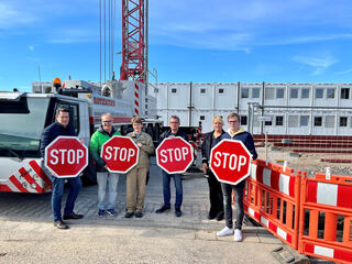 Bereits Anfang Oktober setzen der Reilinger Bürgermeister Stefan Weisbrod (l.) und Anwohner der Carl-von-Drais-Straße ein deutliches Zeichen für einen Baustopp der Flüchtlingsunterkünfte. Eine Ghettoisierung will die Gemeinde verhindern.