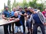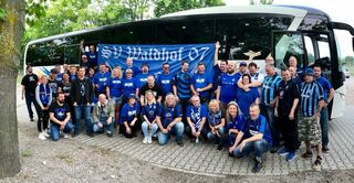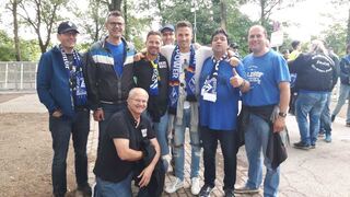 Der Fanclub "Die Blau-Schwarzen Freunde" vor der Abfahrt nach Duisburg.