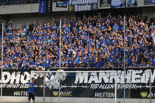 Weil das Uerdinger Stadion nicht den Sicherheitsvorgaben des DFB entspricht, fand das Hinspiel in der Duisburger "Schauinsland-Reisen-Arena" statt. Beeindruckende 4.000 Fans aus Mannheim wollten sich im Stadion breit machen, um die Blau-Schwarzen zu unterstützen.