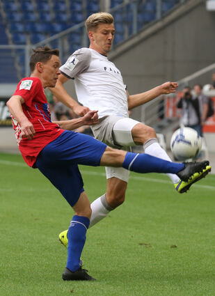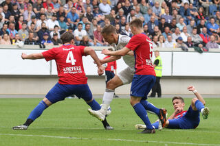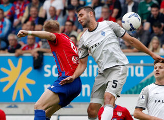 Verteidiger Michael Schultz (r.) im Kampf um den Ball mit Uerdingens Connor Krempicki