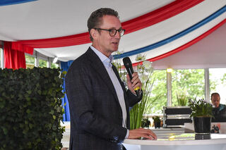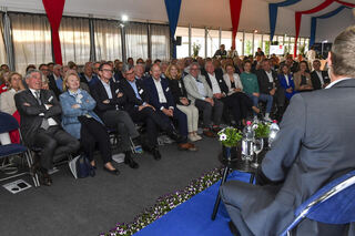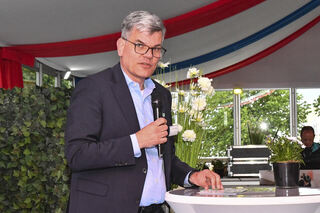 Florian Kranefuß, Vorsitzender der Geschäftsführung der HAAS Mediengruppe, spricht bei der Begrüßung.