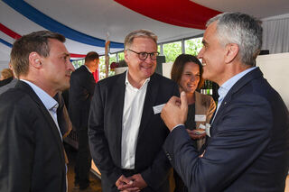 Im Gespräch: Karsten Kammholz (v.l.), Stefan Fuchs und Thomas Fetzer (Rektor der Universität Mannheim).