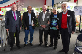 Der Mannheimer Stiftungsgründer Carl-Heinrich Esser (v.l.), Trainerlegende Klaus Schlappner, Manfred Fuchs, Lilo Fuchs und Karl Hörmann (langjähriger Chef der HNO-Klinik an der Universitätsmedizin).