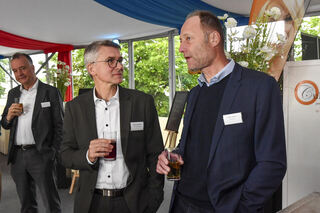Der Abend war auch ein gesellschaftliches Event, bei dem viele bekannte Gesichter zu sehen waren: Christian Kukuk (v.l.), Claudia von Schuttenbach (kaufmännische Geschäftsführerin des ZEW), Gabriël Clemens und Florian Kranefuß.