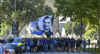 Gesänge und Sprechchöre: Die Fans stimmen sich auf den Marsch ein.