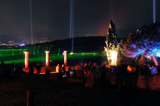 Von der Römervilla Weilberg oberhalb von Ungstein hat man einen schönen Blick über die beleuchteten Weinberge.