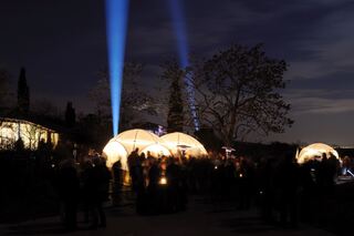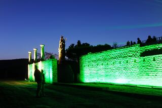 Der Blick über das malerische Gemäuer der Römervilla Ungstein, die Weinberge und die Lichtinstallationen sowie die Haardt im Sonnenuntergang ist ein Höhepunkt der Weinbergsnacht.