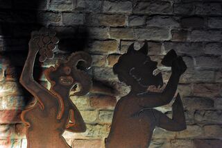 Einige Fausskulpturen erfreuen die Besucher an einem der Wein-Stopps.