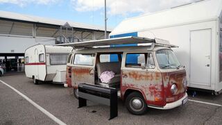 e4Testival E-Auto-Festival Hockenheimring..Sieht nicht so aus, ist aber ein E-Auto: Max Heermann-Többenotke hat den VW-Bully umgebaut...Bild: bjz.18.10.2025