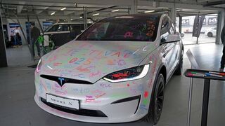 e4Testival E-Auto-Festival Hockenheimring..Ein schön verzierter Tesla..Bild: bjz.18.10.2025