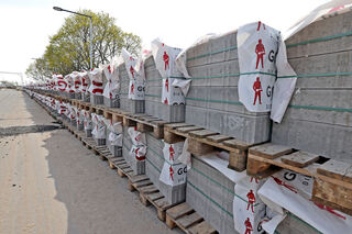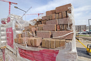 Hier lagern die Ziegelsteine für die Bodengestaltung in der Leonie-Ossowski-Promenade.