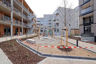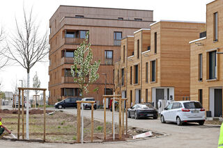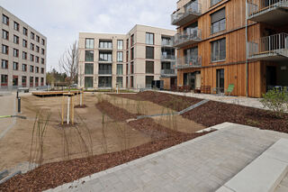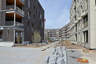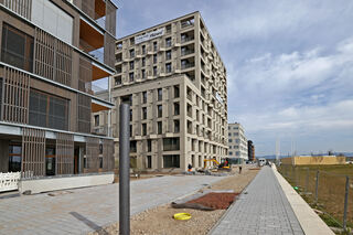 Blick auf den weitgehend fertigen ersten Bauabschnitt, in dem bis zum kommenden Jahr 1100 Personen leben sollen.
