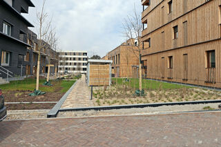 Blick auf eine gemeinschaftliche Grünanalage in der Alice-Droller-Straße.
