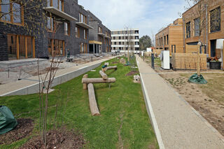 Zwischen den Häusern der Inge-Borkh-Straße und denen der Alice-Droller-Straße wurde die Grünanlage als gemeinschaftliche Freizeitfläche gestaltet.