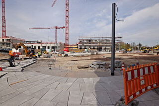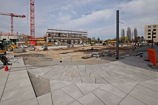 Der Chisinauer Platz ist die zentrale Stelle im Quartier. Im Moment werden die Pflaster verlegt, bald sollen hier 50 Bäume emporwachsen.