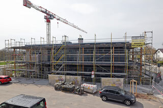 Gegenüber dem Parkhaus der Deutsche Wohnwerte GmbH & Co. KG entsteht gerade die Spinellischule. Im September geht sie an den Start.