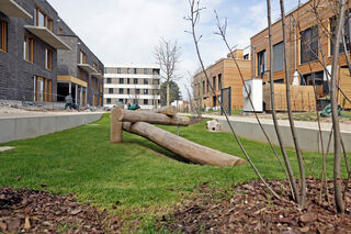 Alice-Droller-Straße. In der gemeinschaftlichen Grünanlage.