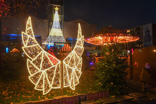 Die großen beleuchteten Engelsflügel sind neben dem Märchenthron ein beliebtes Fotomotiv.