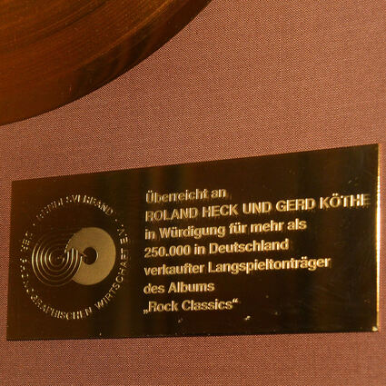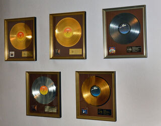 In Hecks Büro finden sich Gold- und Platinauszeichnungen für die Erfolge u.a. mit Ricky King und Peter HOfmann.