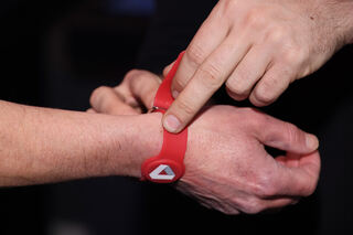 Als Erstes bekommt man ein Plastikarmband. Es sieht aus wie eine Kinderuhr, enthält aber einen Sensor zum digitalen Einchecken. Bild: Christoph Blüthner