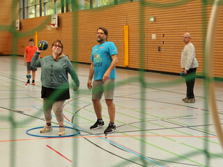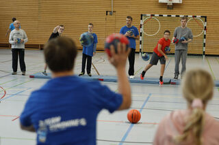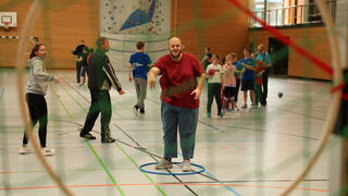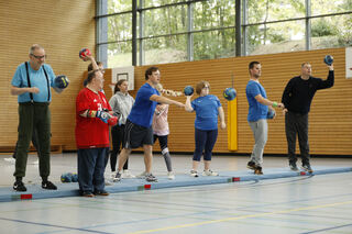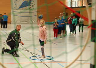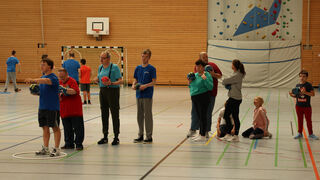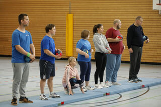 Bei der Wurfübung ist Geduld angesagt, da alle Teilnehmer mitmachen und sich deshalb eine Warteschlange am Abwurfpunkt bildet.