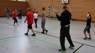 Am Anfang steht leichtes Aufwärmen auf dem Programm. Matthias und Roland haben großen Spaß.