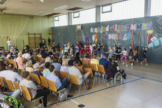 In Bobstadt findet die Einschulung in der Turnhalle statt.