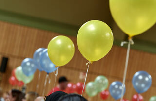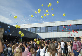 Mit den bunten Luftballons steigen auch die Wünsche der Fünftklässler in den Himmel.