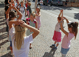 Schule in den Weschnitzauen: Hier ziehen die "Elefanten" vom Bibliser Bürgerzentrum an der Kirche vorbei in die alte Schule in den Weschnitzauen.