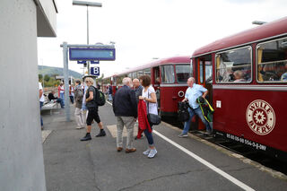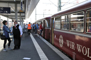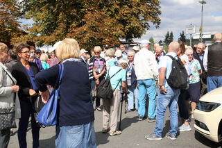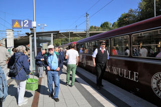 Die Gäste versammeln sich auf dem Bahnhofsvorplatz.