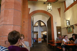 Im Alten Rathaus luden Biertische und -bänke zum Essen ein.