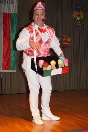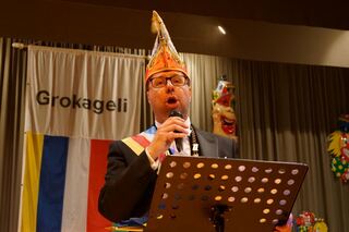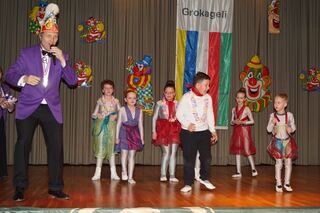 Schautanz der GroKaGeLi-Garde, da freut sich auch Sitzungspräsident Alois Baumnann über den begabten Nachwuchs.