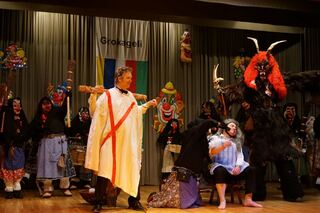 Schaurige Masken: Die Karlstern Hexen treiben es wild unter den Augen von Luzifer (Markus Schüpferling) mit Sitzungspräsident Alois Baumann und Vizepräsident Salvatore Cacciatore (vorne v.li.n.re.).