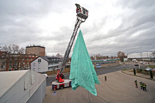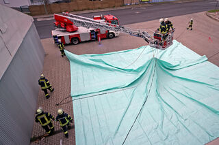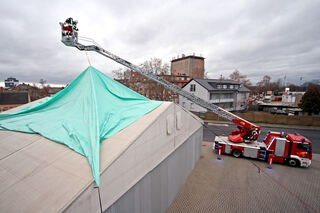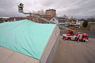 Die Ludwigshafener Feuerwehr hat am Dienstag, 30. November, den Einsatz eines Notdachs geübt.