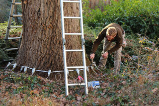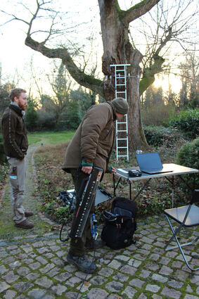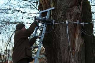 Mit Schallsensoren am Fuß des Baumes kann untersucht werden, ob und in welchen Teilen ein Baum faul ist.
