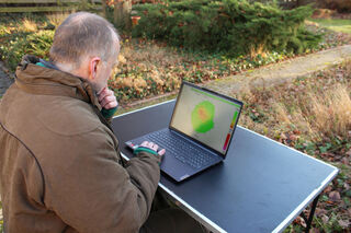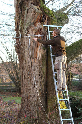Mit einer "Bohrwiderstandsmessung" holt Rinn Erkenntnisse über die Jahresringe und den Zuwachs ein. Auch die Ausbreitungstendenz der Fäule kann mit der Messung untersucht werden.