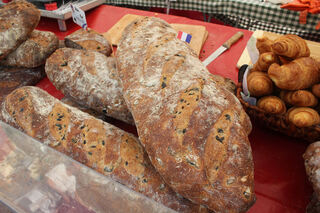 Baguette mit Oliven. Es gibt auch welches mit Zwiebeln, Nüssen oder Speck.