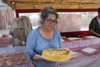 Marktleiterin Béatrice Delorme bestaunt die frische Lachsquiche aus Metz.