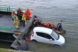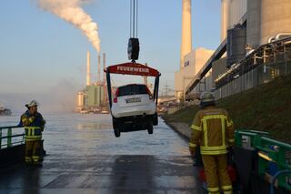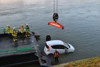 Die Feuerwehr muste das Auto aus dem Fluß bergen. Michael Sebastian hatte zuvor schon die unter Schock stehende Frau aus dem Wasser an Land ziehen können.