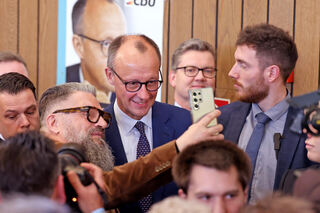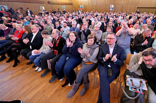 In der Kulturhalle hatten sich die CDU-Anhänger eingefunden - um beispielsweise ein schnelles Selfie mit Friedrich Merz zu ergattern.
