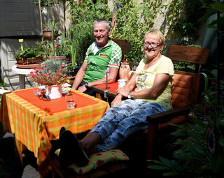 ...genießt das Ehepaar Baasch die Mittagssonne auf ihrer Terrasse.