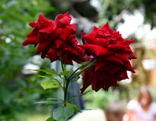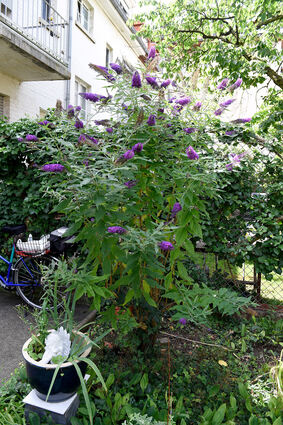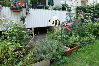 ...blühen inmitten des dekorativ gestalteten Gartens.