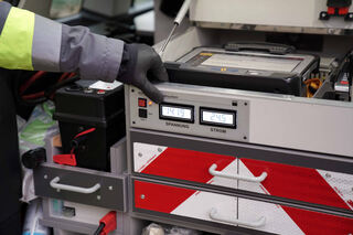 Die Technik an Bord des Pannenhelfer-Fahrzeugs zeigt unter anderem den Ladestand der schlappen Batterien an.
