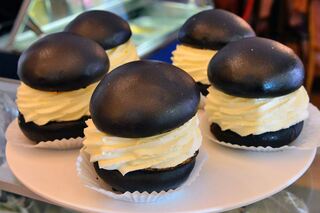 Der berühmte "Mohrenkopf": Mit Vanillesahne gefüllter Biskuit.