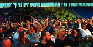 ... rund 950 Besucherinnen und Besuchern des Zeltfestivals im Reitstadion auf dem Mannheimer Maimarktgelände ausgiebig feiern.