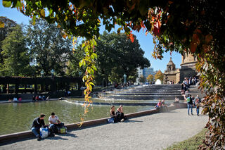 Ein sonniger Herbsttag, wie man ihn sich kaum schöner wünschen kann. Rund um den Wasserturm kann man diese besondere Atmosphäre genießen.