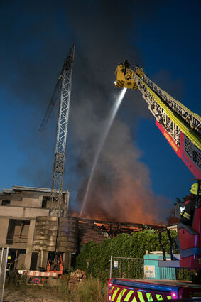 Ein benachbarter Rohbau hat vermutlich nur Rußanhaftungen davongetragen.